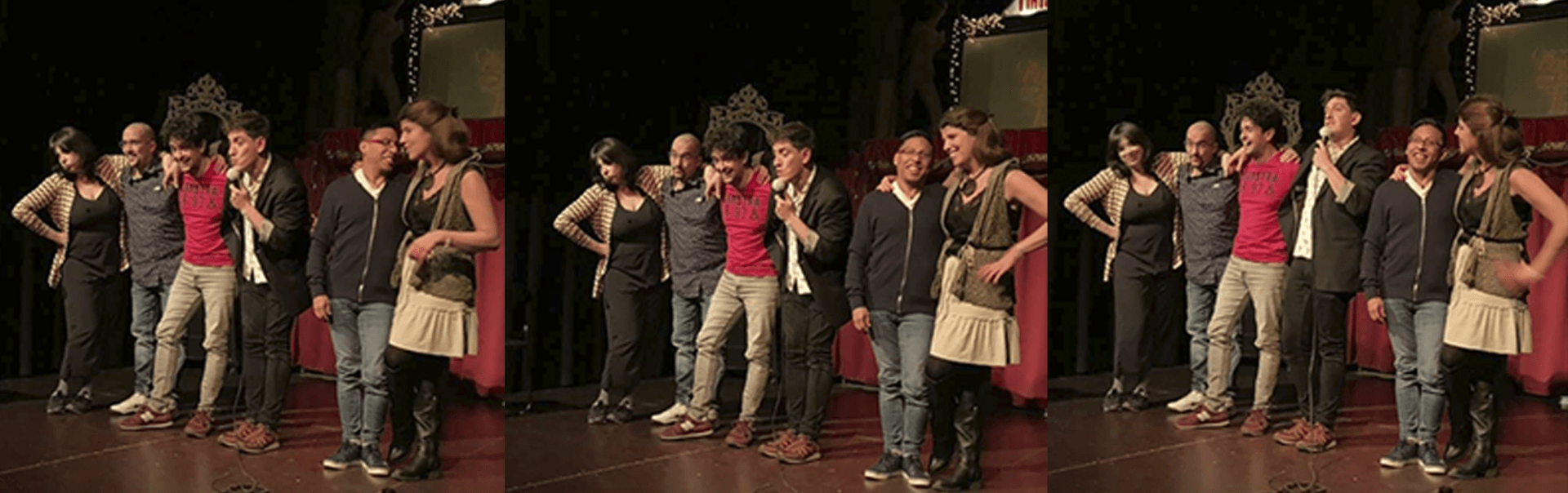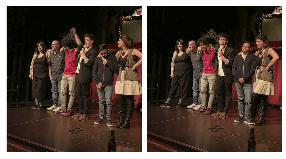 más de dos años en los escenarios, tiene su propio open mic @ComicLingus, y no sufre de pánico escénico. Por tanto, se desenvuelve con absoluta normalidad en el escenario. Y era completamente consciente de la situación de la cómica; y que ese día no pudo acabar el monólogo, al verse por primera vez de pie. Siendo además esa